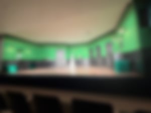 🎨 Die Kulisse wurde mit viel Engagement von unserem Kulissenbauteam entworfen und in der Aula aufgebaut.